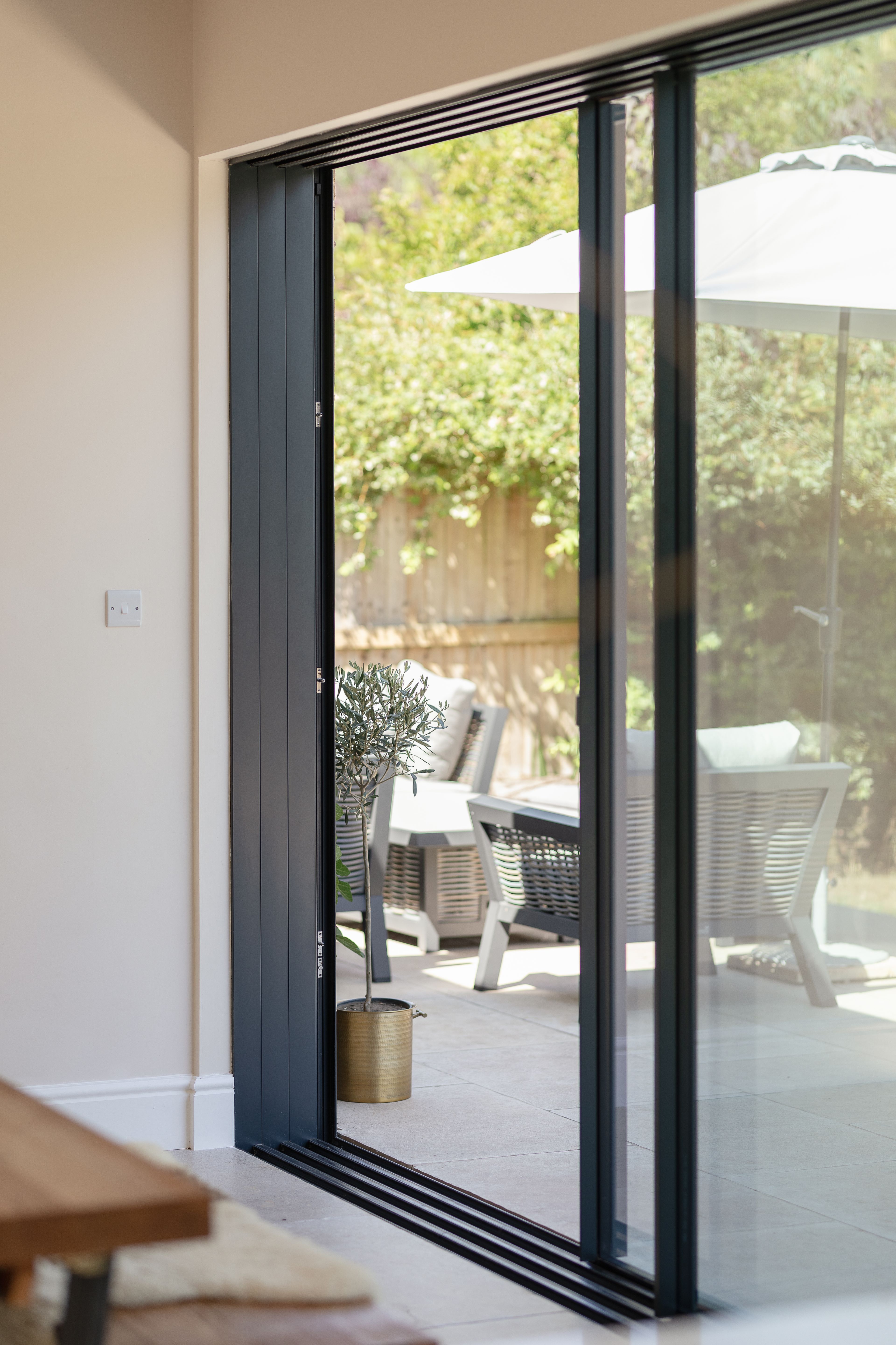 Berkeley Road in Cirencester is a five bedroom detached home set within a generous rural plot. Designed by Croe Architects and delivered by Brick and Build, the project balances contemporary glazing with a warm, grounded material palette. The architecture centres on long, uninterrupted views to the garden, with large format openings that bring clarity, light, and a sense of calm to the interior. Fluid Glass worked closely with the team to introduce sliding and folding elements that expand the living spaces and strengthen the connection to the landscape.